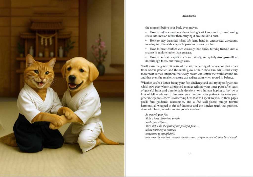 In a world where being the biggest, loudest, or most dramatic often gets mistaken for strength, it’s easy for the quieter souls to feel overshadowed. Aikido for Cats – Puurrfect Self-Defense in a Dog’s World is a reminder that true power doesn’t need volume—or claws—to be felt.
