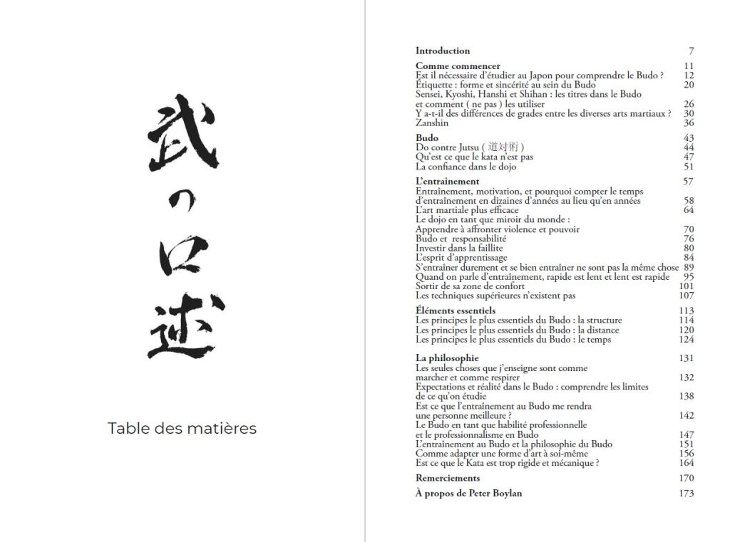 Peter Boylan, alias “ le vagabond du Budo ”, a obtenu un haut grade dans plusieurs arts martiales, après avoir passé des dizaines d’années en immersion dans le Budo, à cheval entre les mondes et les cultures de l’Amerique et du Japon, en traduisant l’une pour l’autre. Dans ces essais, le lecteur est invité à marcher à côté d’un homme tranquille qui s’interroge en profondeur sur les mondes dans lesquels le Budo a été créé et est pratiqué, et qui porte la signification de toutes les choses qui sont le Budo dans notre vie quotidienne.
