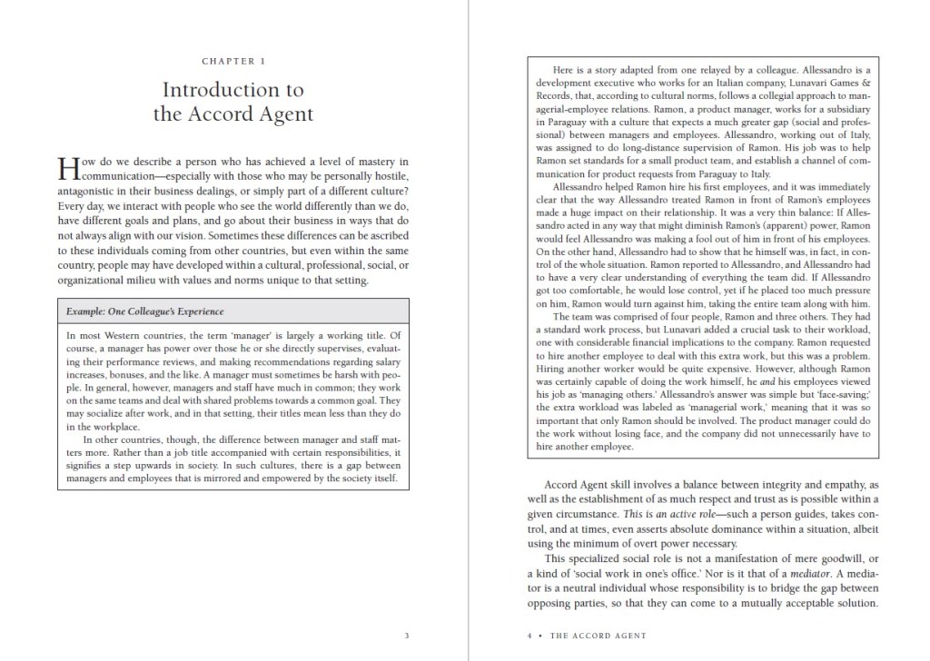 The Accord Agent maintains a focus on his or her goals, while simultaneously seeking to achieve a level of trust, engaging others with professionalism, integrity, and respect. The Accord Agent crafts the communication to form a working relationship with the other person to share in achieving the aims of his